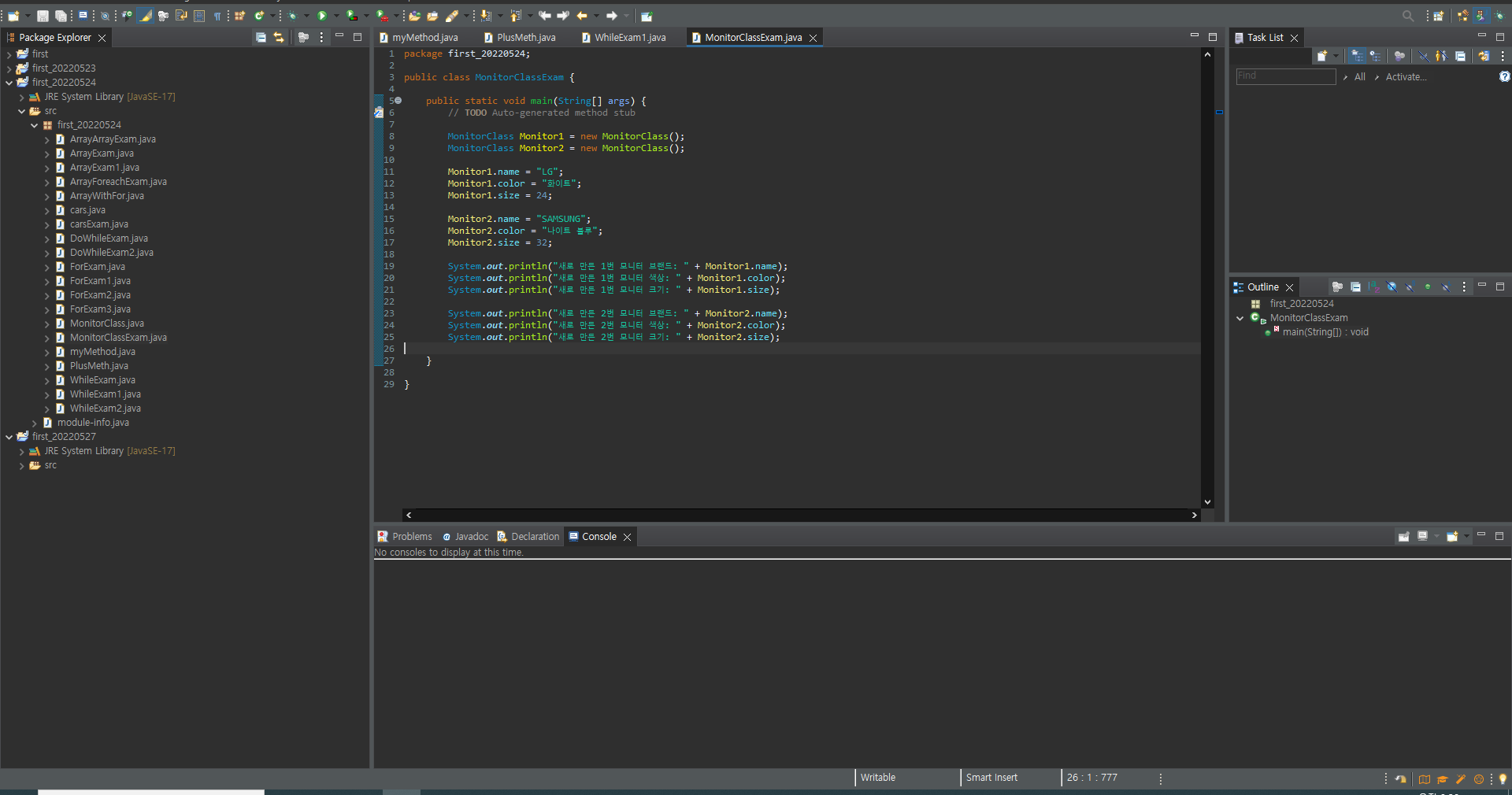 | 10일차 학습내용 JAVA_기본형 형변환 및 연산자 if switch (0) | 2024.05.23 |