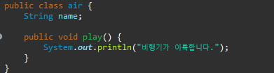 Ex) Air라는 클래스는 생성하고 비행기명을 입력받아 보잉747비행기가 이륙합니다를 출력한다